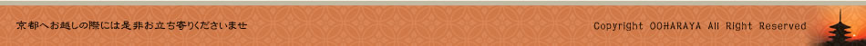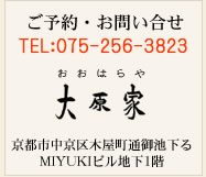 平成18年5月にホテルフジタ京都内に独立し、屋号を「鳥處 大原家」に改めました。 ホテルフジタ閉館により、移転先の木屋町通りMIYUKIビル地下1階にて平成23年4月に移転オープンしました。 屋号の書:滋賀県湖南市在住の書家の作品です。