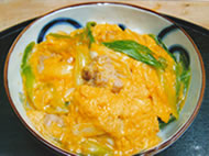 有精卵とこだわりの出汁の玉子丼の上に、風味豊かな地鶏を特製のたれにからめてのせました。