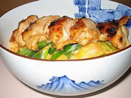 大原地区で採れた有精卵の卵と九条ネギと新鮮な地鶏を使用しています。